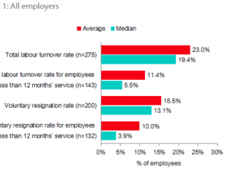 Staff turnover has reached its highest level for four years, with 15.5 per cent of employees resigning in 2016, up...