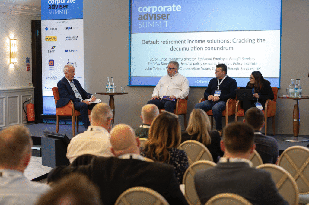 Speaking at the Corporate Adviser summit, Redwood Employee Benefits managing director Jason Brice, Gallagher John Yates principal DC promotion leader and Pensions Policy Institute head of policy research Dr Priya Khambhaita highlighted the risks of members “sleepwalking” into poor decisions, the need for defaults that balance flexibility with security and the uncertain role of CDC in providing sustainable incomes.