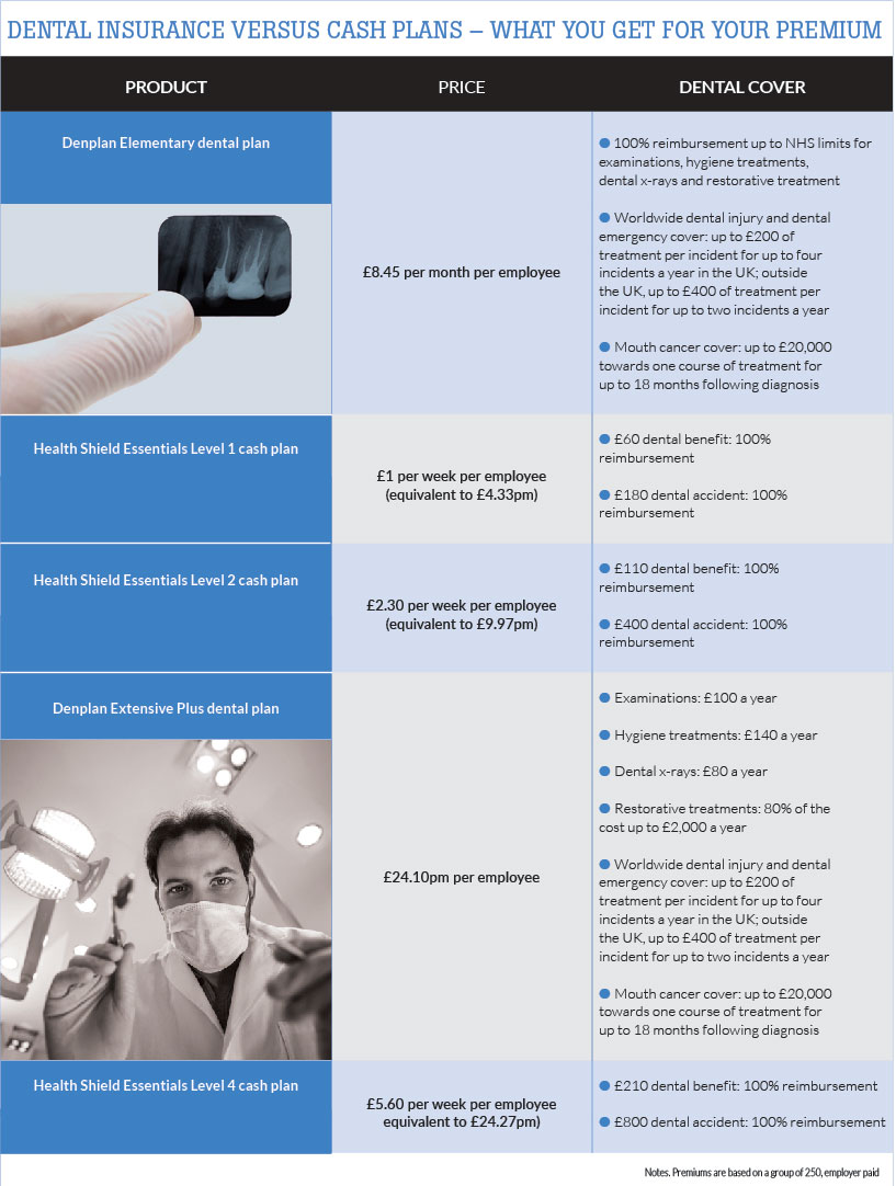 But it is rarely a case of either/or with dental insurance and cash plans, with each having benefits that appeal to employers and employees. Subsequently, providers have become much more flexible, enabling their products to run alongside one another.