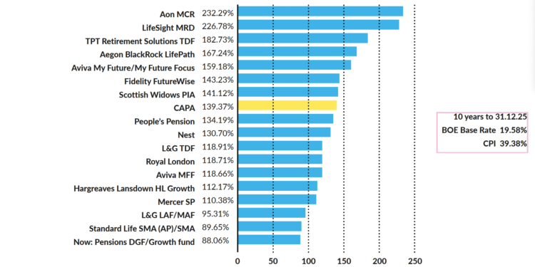 All providers that have a 10 year track record have delivered returns that more than double the rate of CPI inflation, and all but three have more than doubled members’ pots in this period.