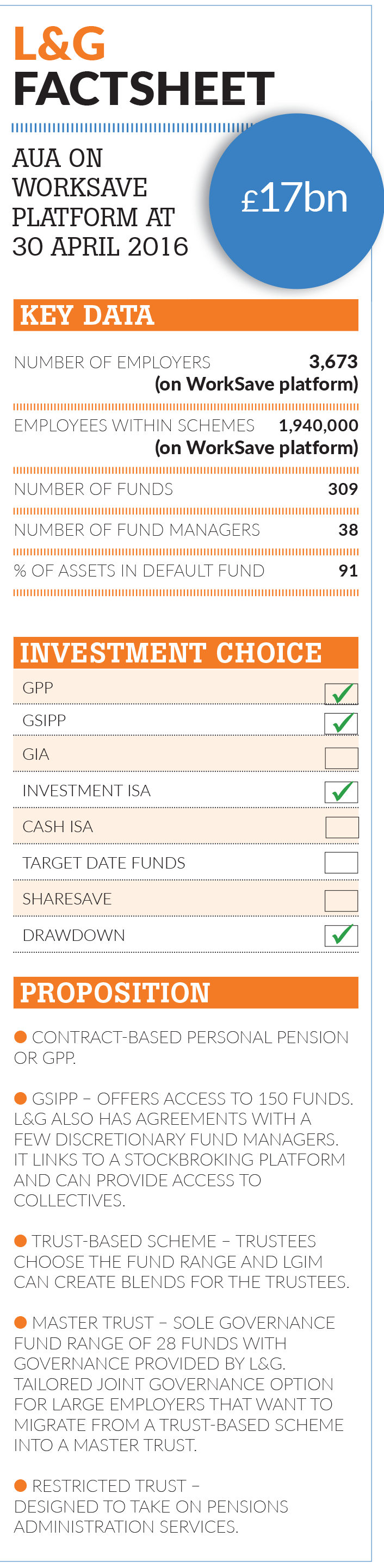 Its low-cost strategy means the provider needs a high volume of scheme members. Last year, Tesco rolled out its Master Trust DC scheme to all staff – a major coup for L&G.